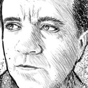 A close-up portrait captures the intense and curious gaze of a tuxedo cat. The detailed rendering highlights its distinctive black and white fur.